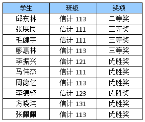 本项赛事由校教务处主办,恒大开源公司协办的第一届软件开发大赛,旨在与广大在校学生分享前沿先进的开源技术,向IT行业输送具有创新能力和实践能力的高端人才,提升高校学生的就业竞争力,推动行业发展及人才培养进程。本次比赛设一等奖1项、二等奖3项、三等奖5项、优秀奖10项。目前我信计专业获奖学生已部分得到恒大开源公司的实习面试机会。