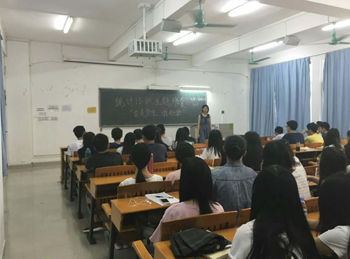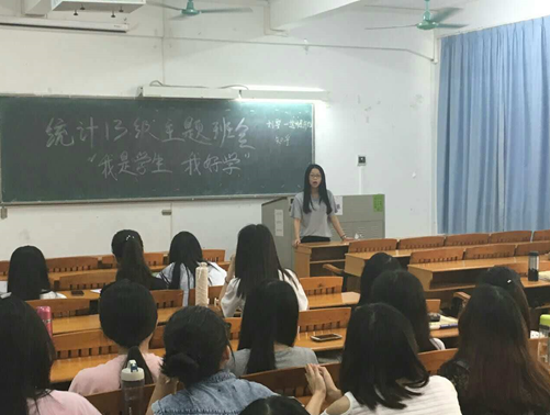 助班廖丽娟通过讲述自己求职面试的经历,提醒同学们在工作面试,要保持自信,充分展示自己的优势,还可利用暑假实践积累社会经验,并鼓励大家学好专业知识和英语,尽可能多地掌握统计分析软件的应用。