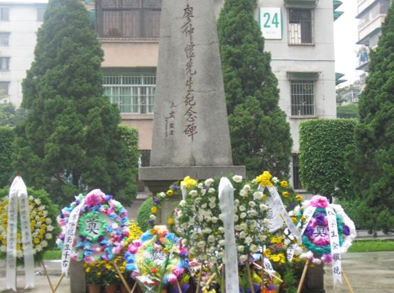 9:30,同学们整体地站在烈士墓碑前,该系组织部部长致哀悼词,向烈士献上花圈,接着默哀三分钟,默哀完毕全体学生绕墓碑一圈,最后进行宣誓,发扬爱国精神。仪式完毕,同学们参观了烈士陵园,了解更多关于烈士的先进事迹,学习他们的爱国精神。中午12:00,同学们回到学校,又在廖仲恺先生纪念碑前进行悼念、默哀并献上鲜花。