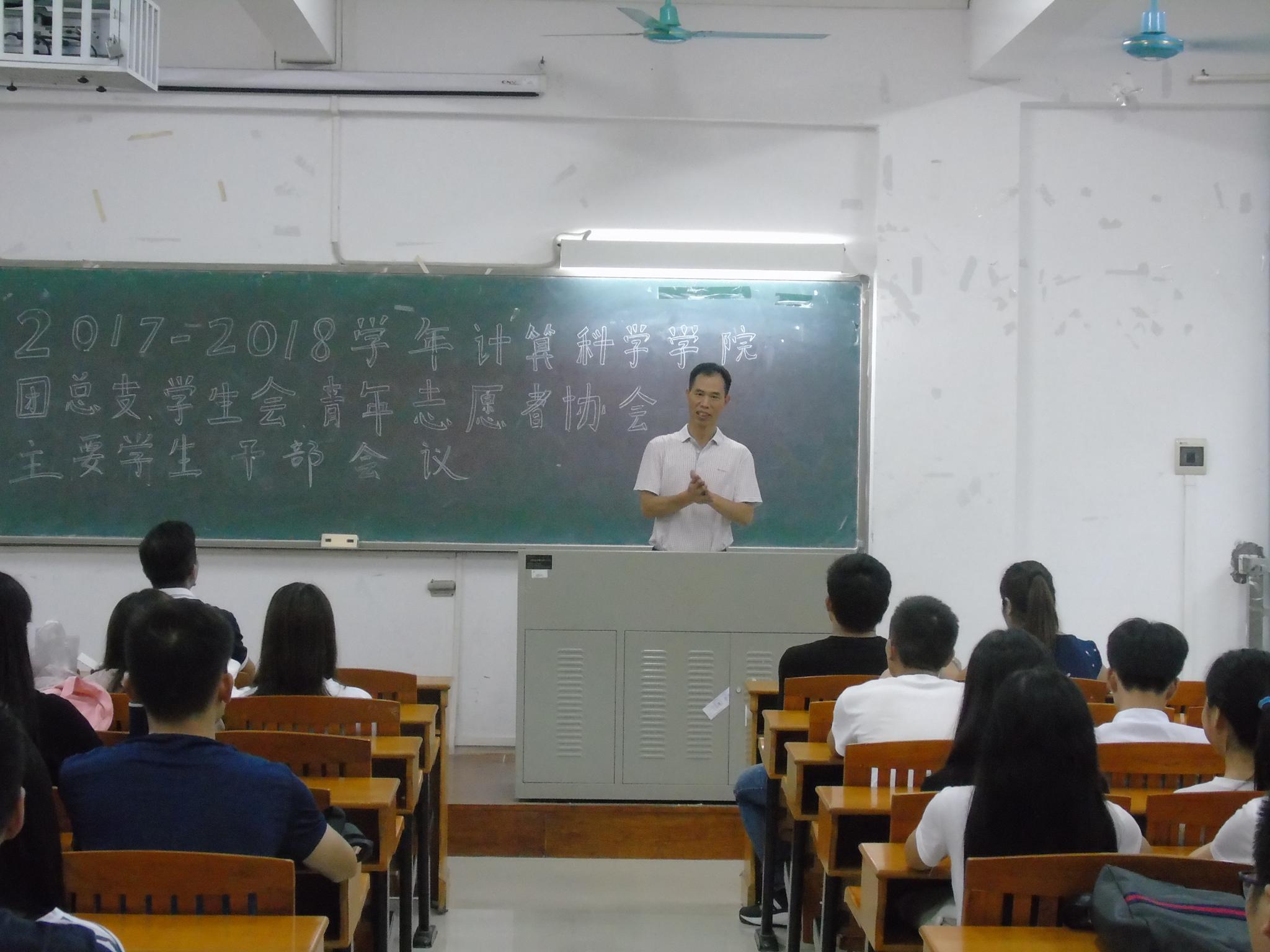 为提高计算科学学院学生干部的服务意识,筹备迎新工作相关事宜,9月4日中午,计科院在杨钊杨勋楼201室召开2017-2018学年团总支、学生会、青年志愿者协会主要学生干部会议。出席会议的有该院党总支书记刘伟坚、副书记郭肖明,辅导员周晓斌、卢頔、徐盼,以及新一届主要学生干部,会议由卢頔主持。