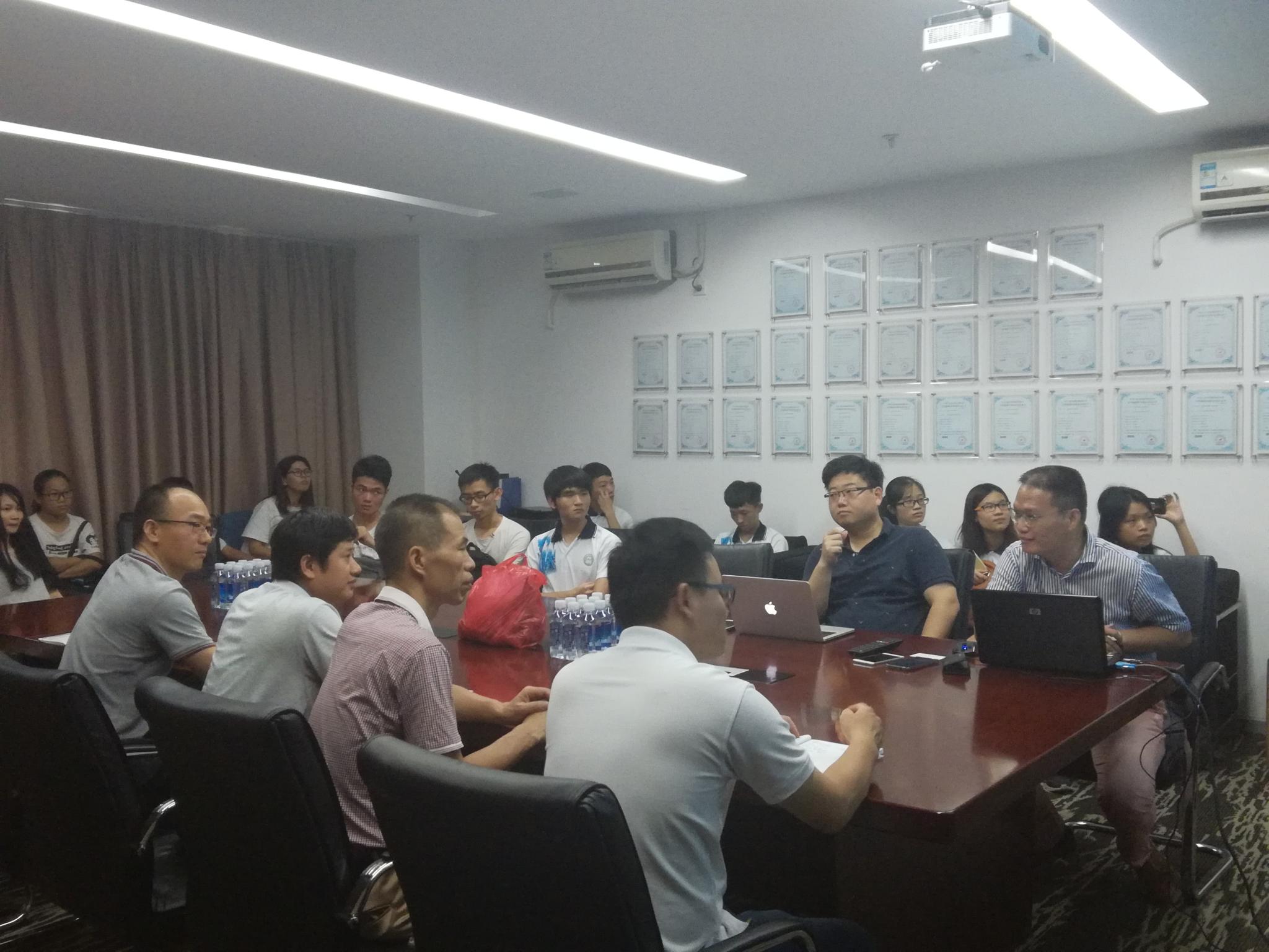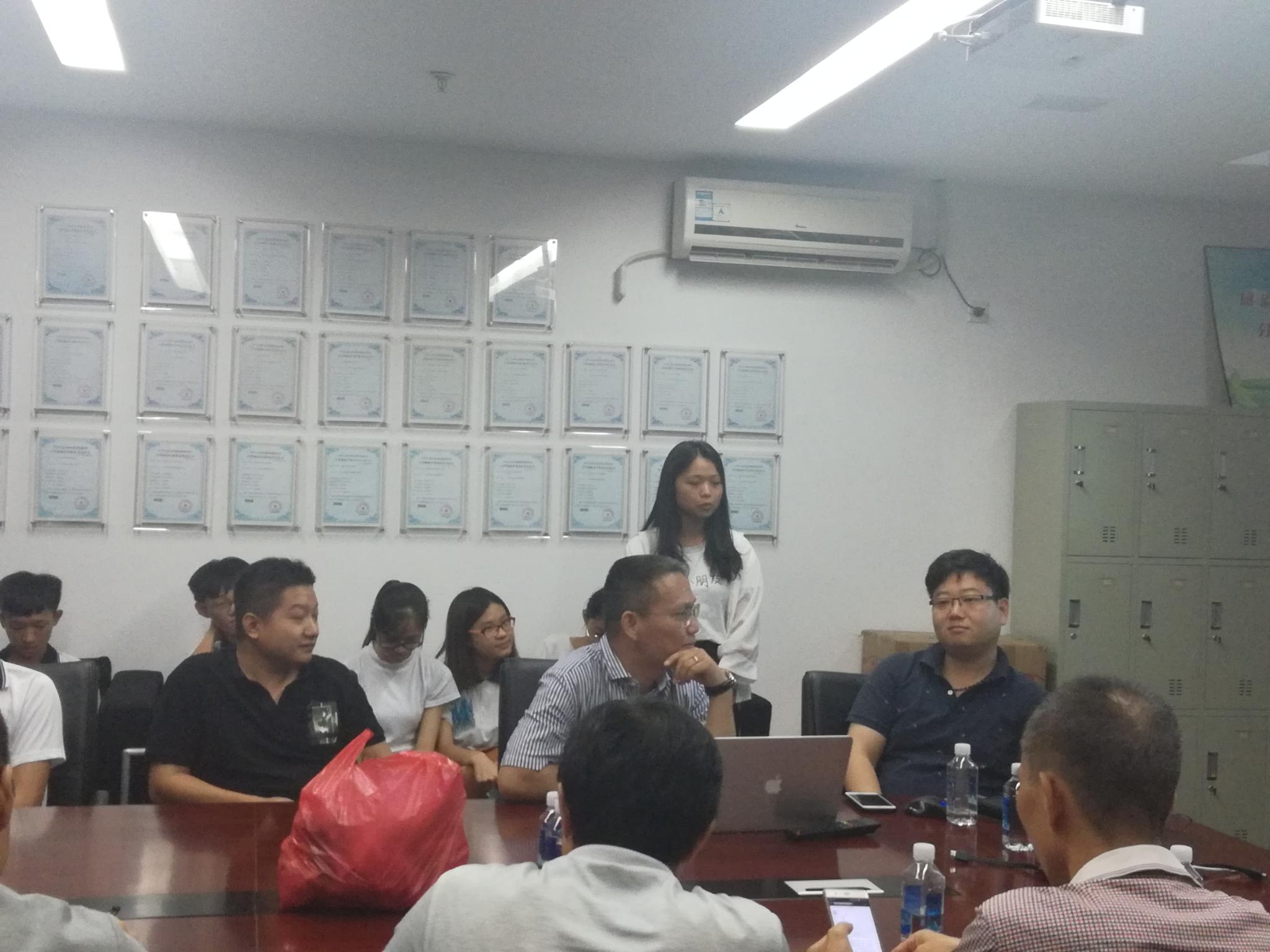 随后,负责软件工程开发项目的陈经理又简单介绍了实习基地的另外一个合作企业——广州千翼信息技术有限公司。相较于广州广软信息技术服务有限公司,广州千翼信息技术有限公司是比较年轻的。它成立于2013年,一直致力于软件工程建设、信息技术外包服务ITO和面向IT行业人力资源服务。陈经理很细心地照顾到在场学生代表的身份,结合近十年IT行业人力资源的变化和现状,分享了一些就业发展建议,比如大学生的“先就业再择业”中的“就业”应当是一定选择范围内的,在选择第一职业的时候也要考虑自身之后的发展。领队的老师们也纷纷提出了个人的想法。