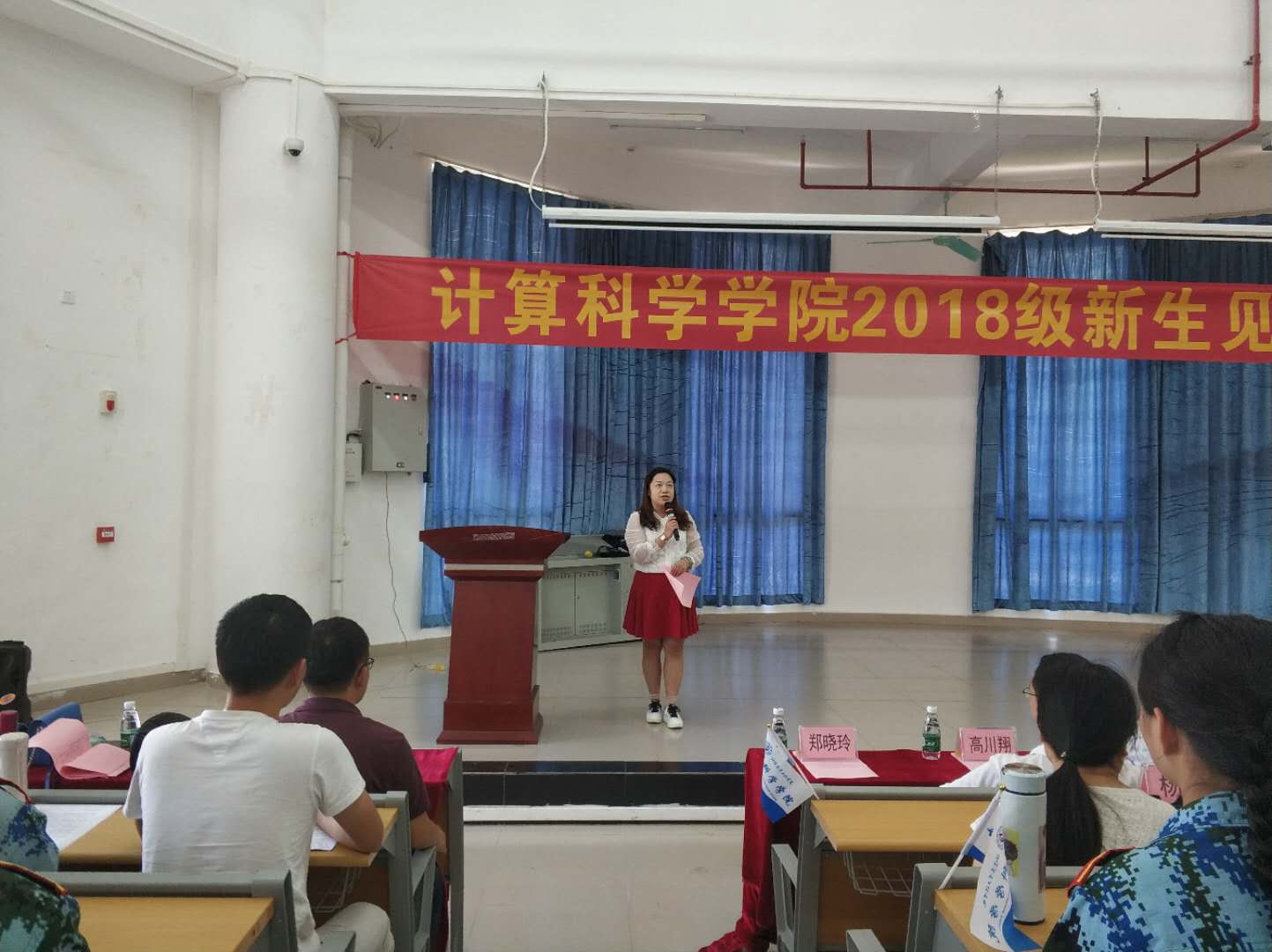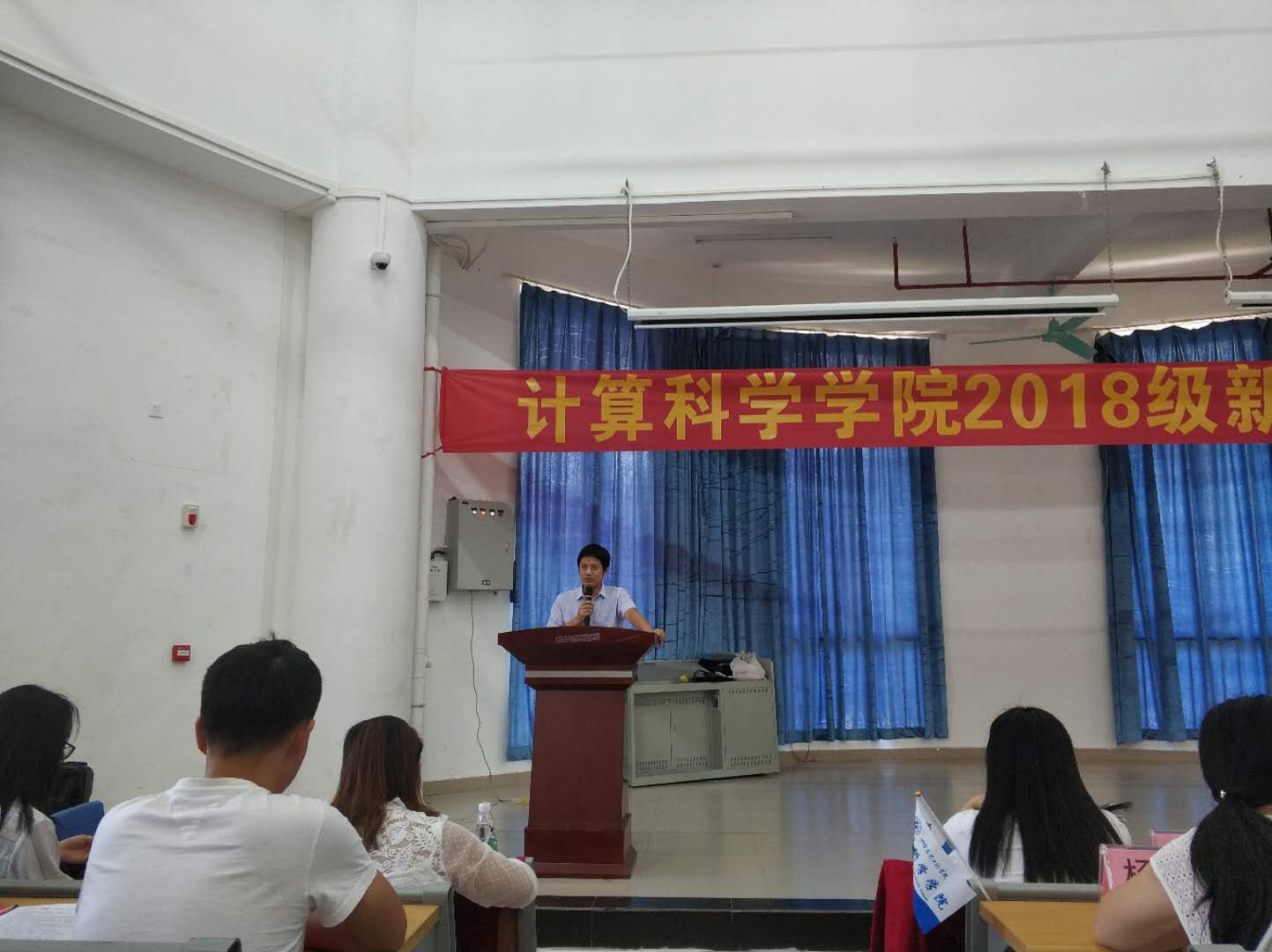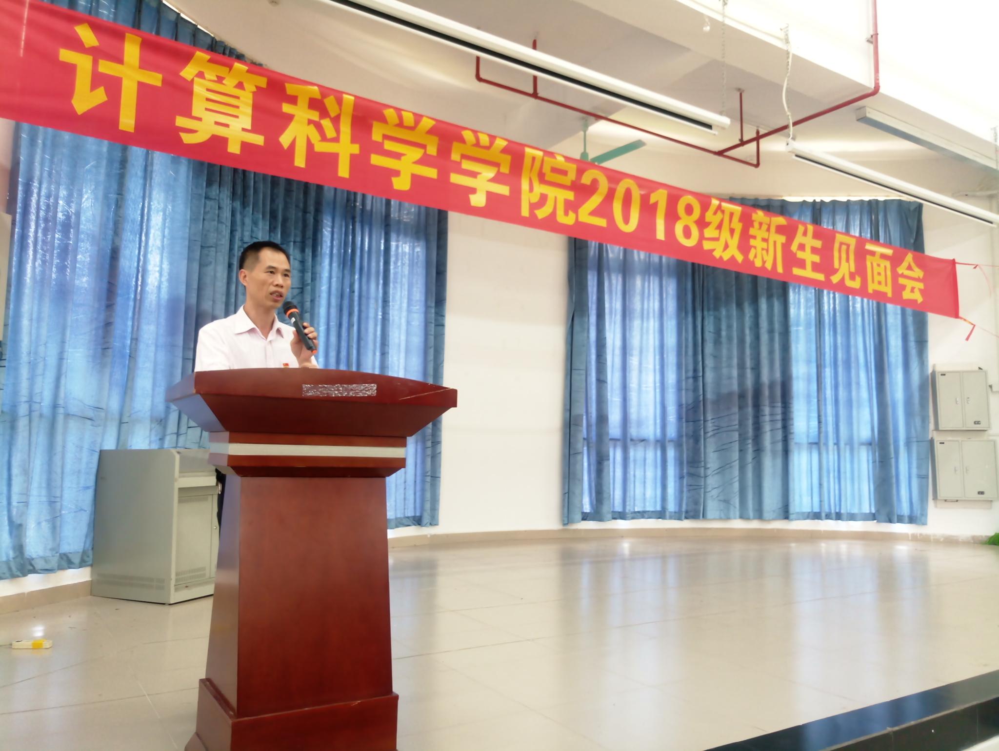 2018年9月11日下午13:30分,我院在D1小礼堂举行了计算科学学院2018级新生见面,参加本次会议的有计算科学学院党总支书记刘伟坚、副院长张超龙、各专业教师等。会议由我院党总支副书记郭肖明主持。