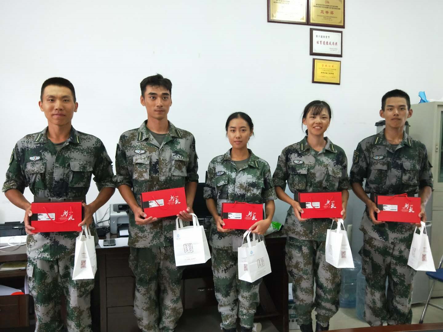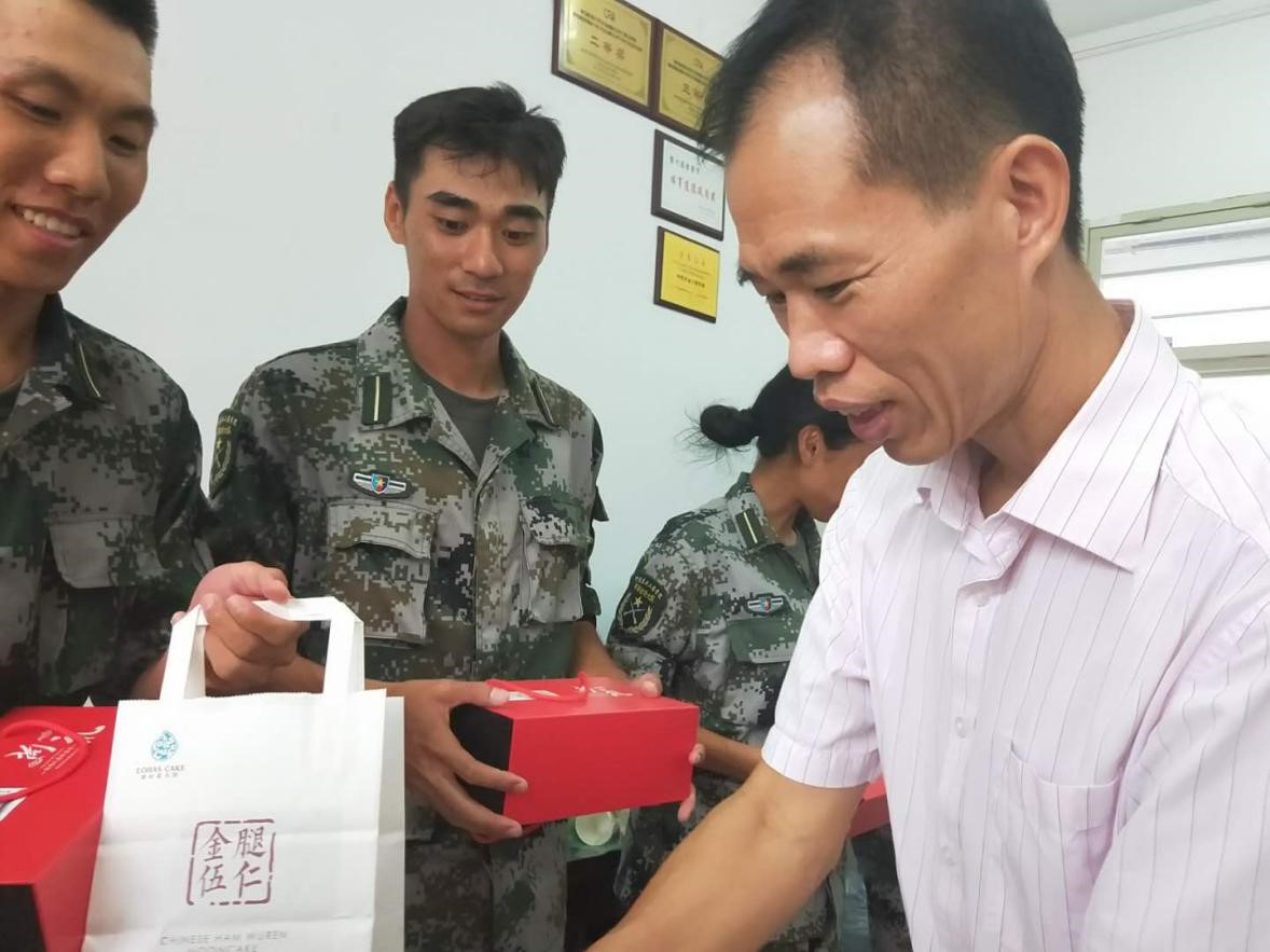 刘伟坚书记为学生教官送上慰问品,郭肖明为学生教官送上月饼,并预祝大家中秋节快乐。
