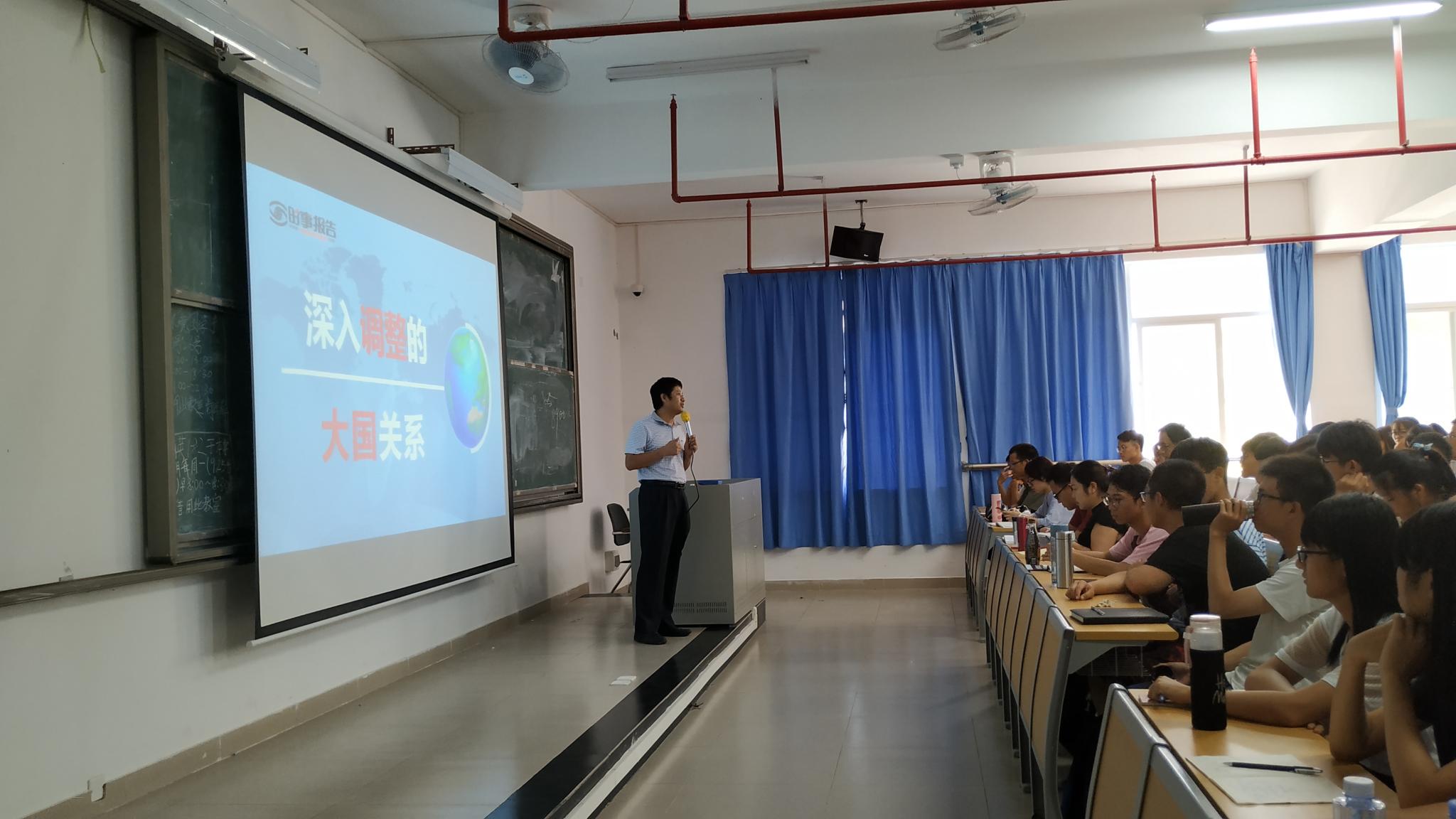 院长张超龙讲课的主题为“深入调整的大国关系”,深入分析当今形势下的中美、中俄、中日等关系,使同学们对当前中国的定位有了更明晰的认识。张院长提醒广大新生要关注时事,关心国家大事,并指出世界秩序依然改变,世界框架即将重新构建,新生作为未来中国的栋梁,需要做好为中国两个百年目标奋斗的准备,并且拥有胜利的决心。张院长对新生寄予了厚望,他强调大学生都应该具备历史观、大局观和角色观,三者缺一不可,在场的每一位新生都牢记在心,切不可忘却。