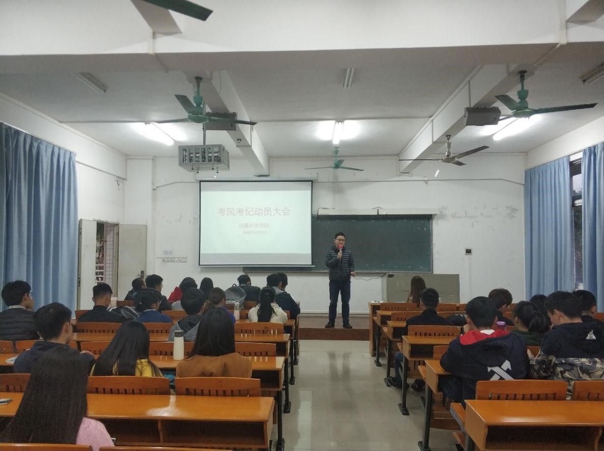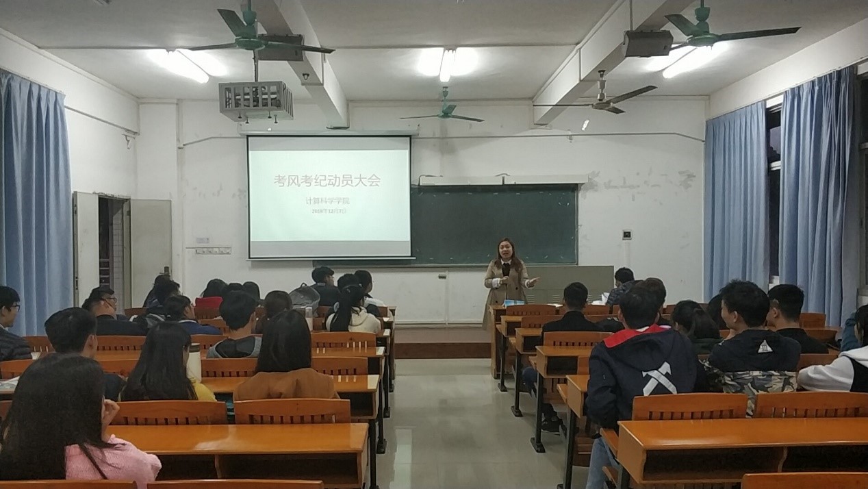 为进一步加强考风考纪教育,增强学生的诚信意识和纪律意识,杜绝学生考试违纪现象,近日,计算科学学院在杨楼202开展考风考纪动员大会,出席此次会议的主要有党总支副书记郭肖明、辅导员徐盼,院学生会学术部全体成员以及各班班委。