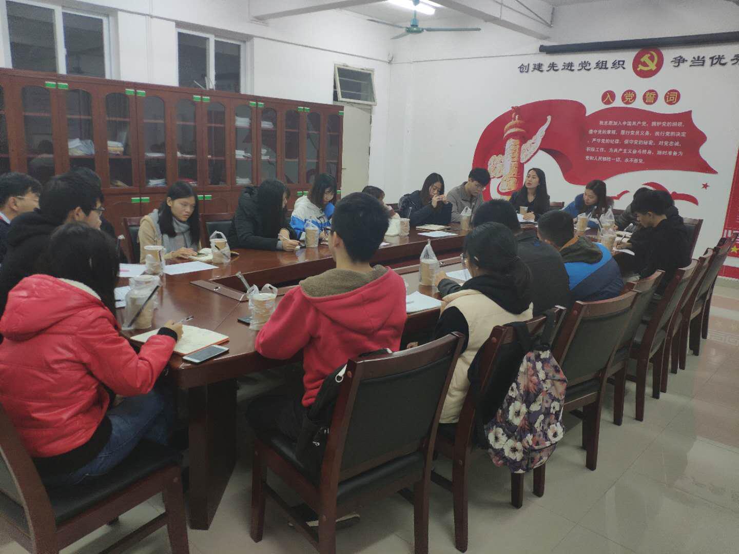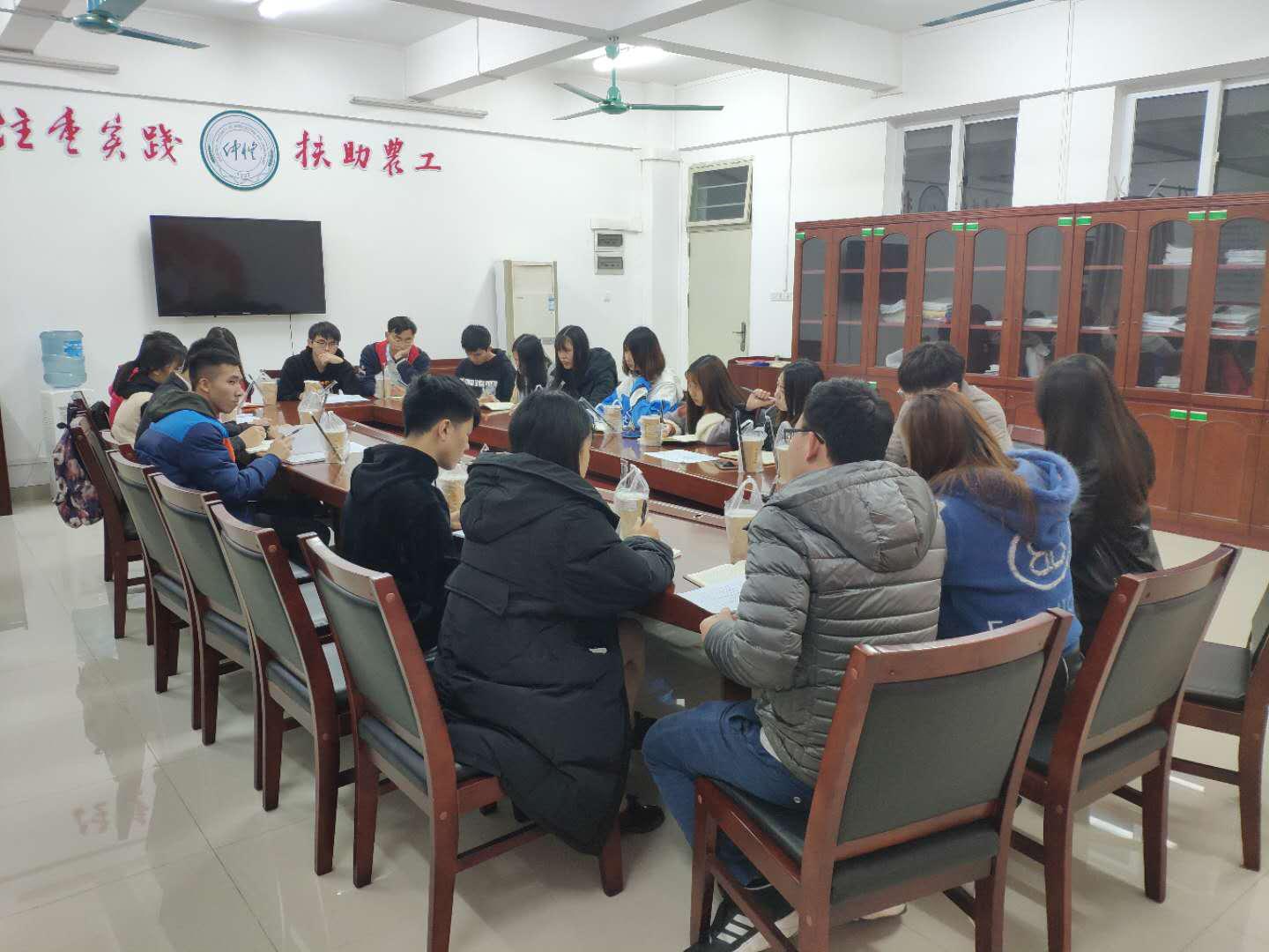 2019年1月7日晚,计算科学学院在刘楼党员活动室召开学生工作委员会议,参与本次会议的主要有学院党总支副书记郭肖明、辅导员徐盼、张素雅以及辅导员助理、学生党支部主要负责人、院团委书记团、学生会主席团和青协会长团。