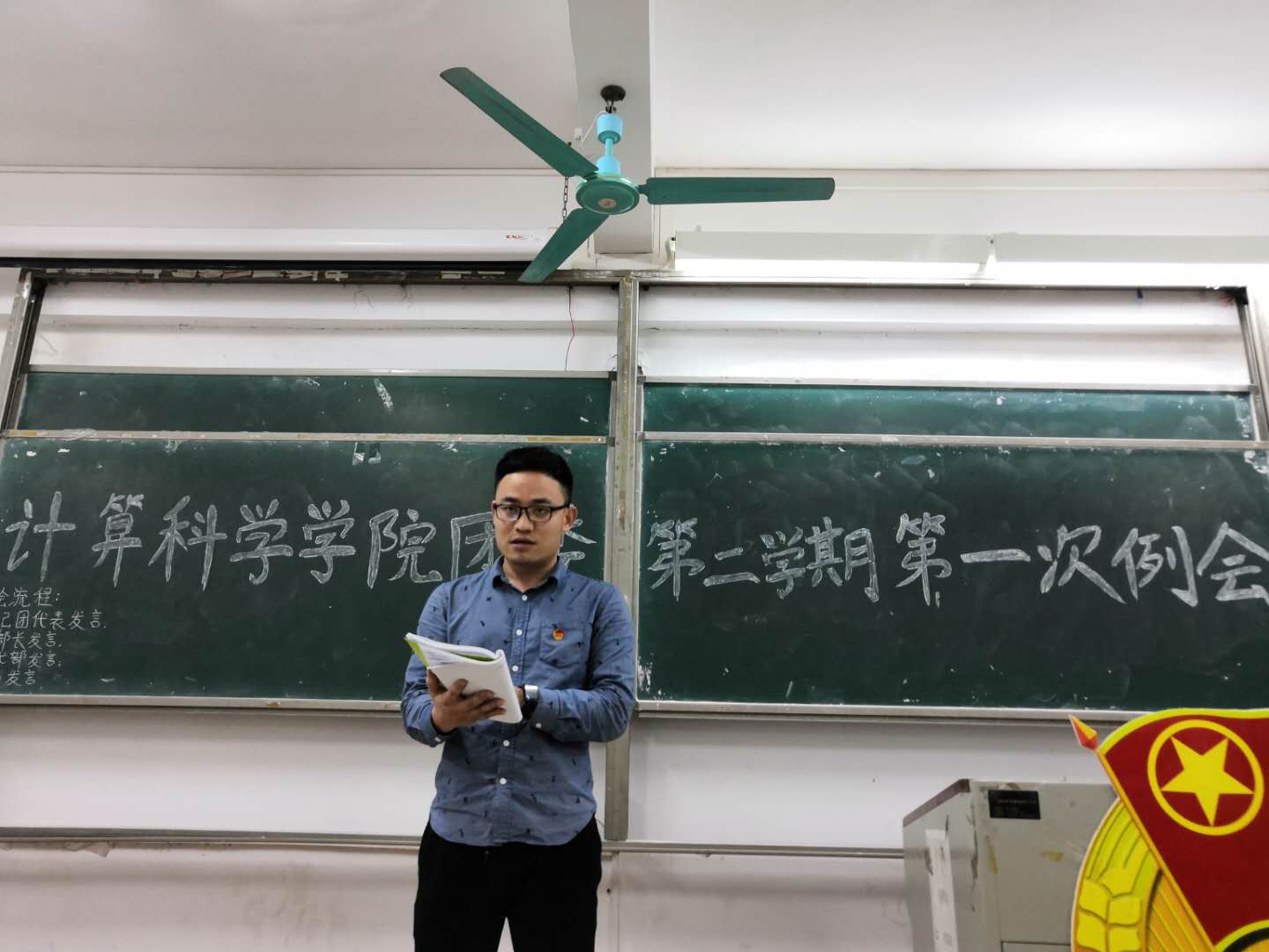 2019年3月28日下午5点,计算科学学院团委在杨楼210室召开了本学期第一次工作例会,参加本次会议的主要有院团委副书记徐盼老师、辅导员张素雅老师、校团委代表以及院团委全体成员。
