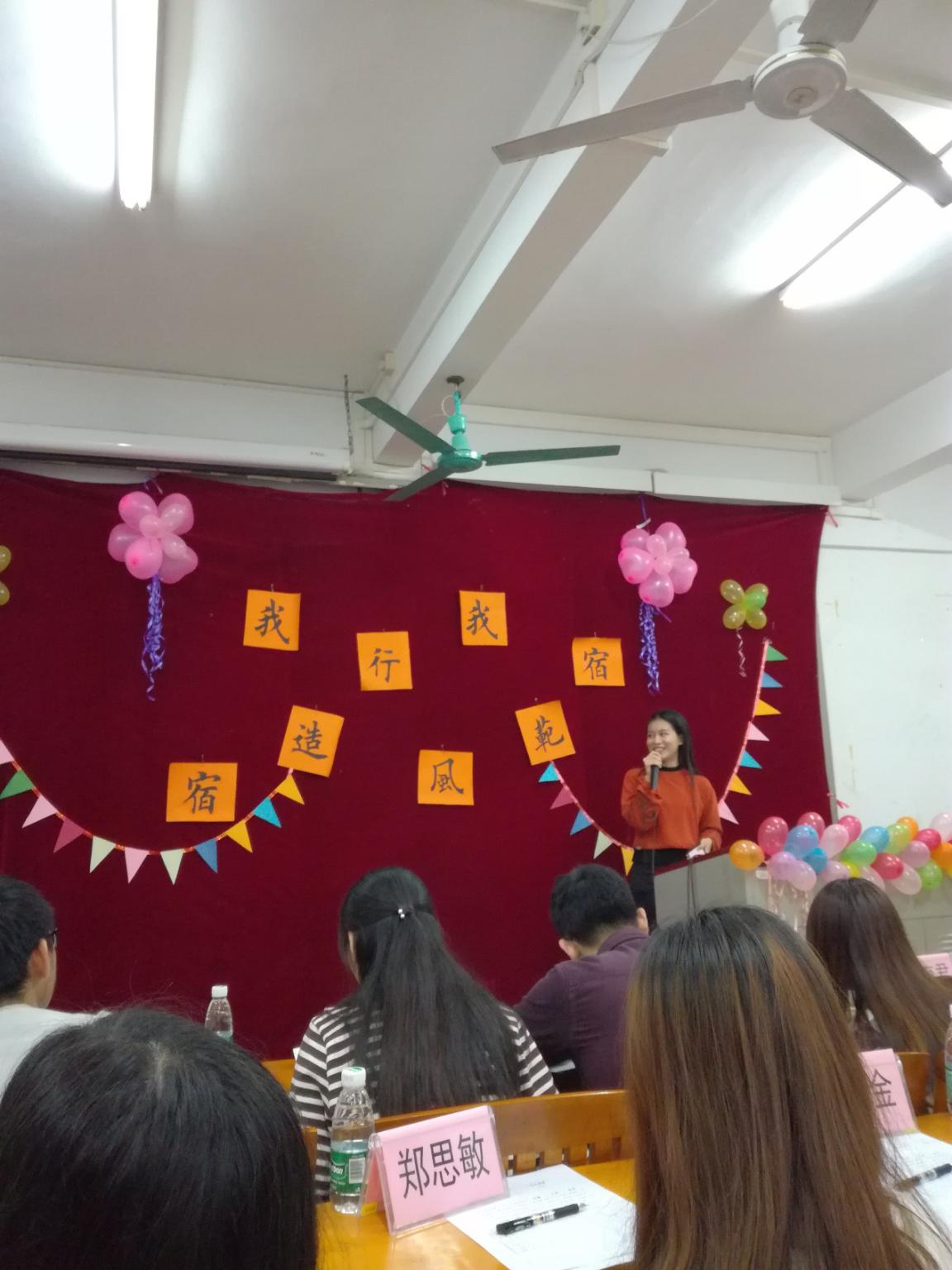本次比赛分为两个环节:一是演讲环节,宿舍代表上台介绍自己的宿舍情况;二是表演环节,宿舍成员开始才艺表演,展现宿舍成员的风采。同学们纷纷就自己宿舍的制度建设进行了简要介绍,并仔细说明了自己宿舍的装扮、风格,也通过小品、合唱等形式展现了计科学子的风采。