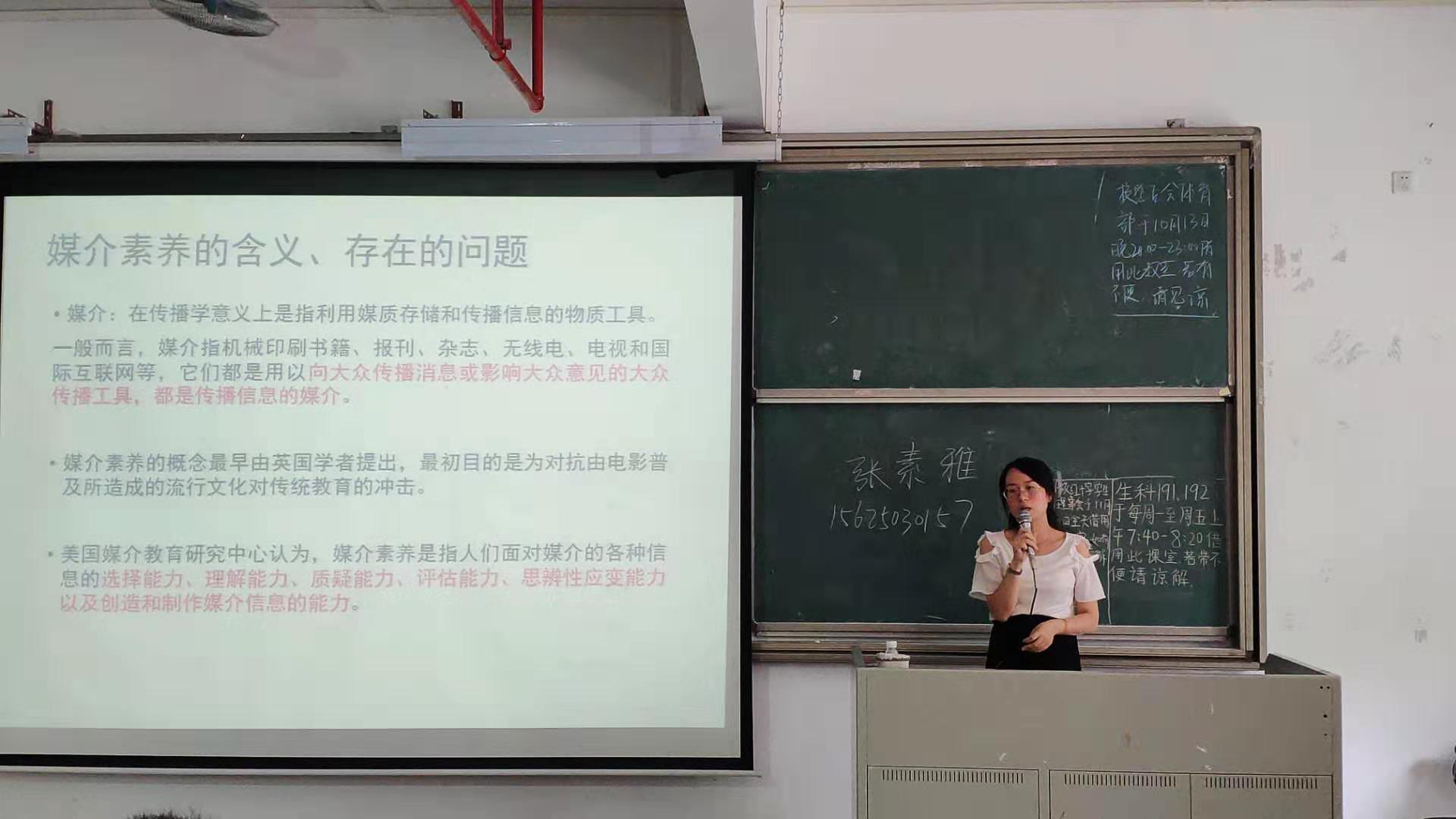 张素雅老师与新生们一起“三学”:学习全国青少年网络文明公约、学习文明上网自律公约,学习“网络管理办法”,倡导同学们“三争”:争做网络道德规范榜样、争做网络文明使者、争做网络安全卫士。张老师结合现实生活中的案例,对媒介素养的含义及存在的问题进行了讲解。她指出,当前大学生媒介素养存在缺乏理性的媒介信息辩识能力、过度依赖新媒体、媒介运用和参与较为被动、缺乏媒介道德和法律意知识等问题,鼓励学生多读、多看、多思考,培养批判思维能力、思辨性应变能力和科学素养,避免信谣传谣,随意转发不实言论。