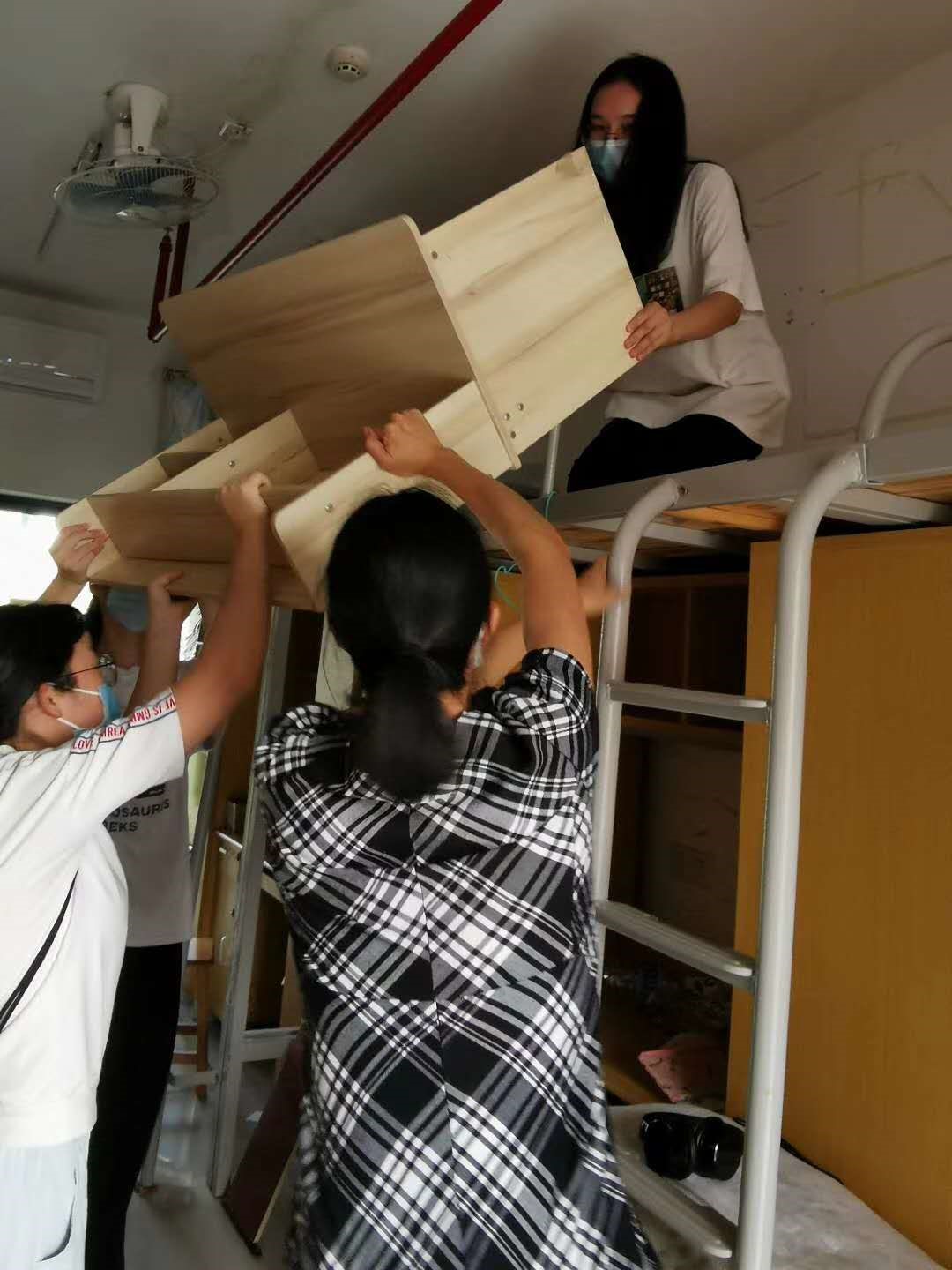 一名党员就是一面旗帜,一个支部就是一座堡垒。在6月30日毕业生离校和7月1日非毕业班学生马上就返校腾挪宿舍工作叠加情况下,清理规整学生宿舍时间紧、任务重!这个时候,为了有序推进两个工作同时顺利开展,党员学生“说上就上”“说干就干”!6月30日的下午估计最高温度达37-38℃,光是坐着不动都会汗流浃背。但党员学生戴着口罩,高温中在宿舍清理杂物,所有人的衣衫都被汗水湿透了。