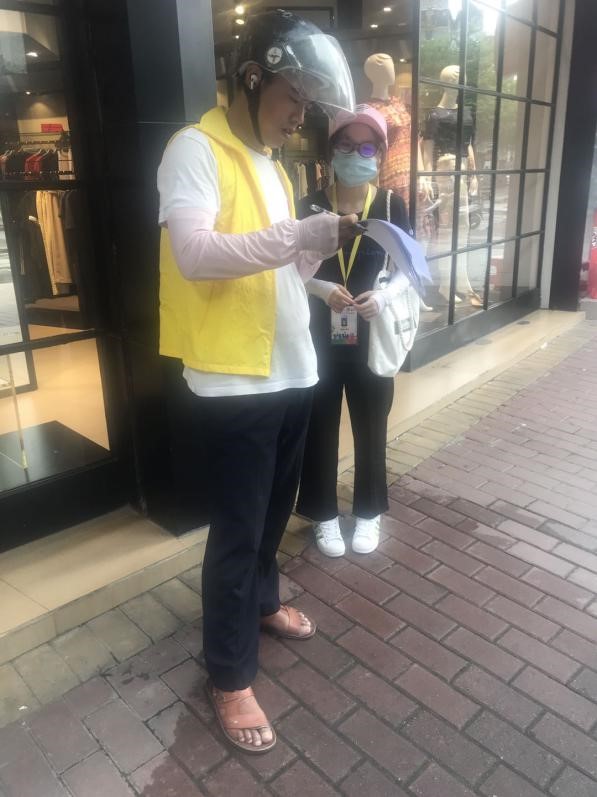 今天是汕头分队开展“疫情当下的个人卫生与环境保护”三下乡调研活动的第二天,由于调研地点较远,队员们临近中午11点在调研地点集合。与第一天一样,队员们走街串巷,随机寻找路人填写问卷,采取的方式依然是路人自行填写与团队成员指导填写。或许是天气原因,路人不多,遭遇了一些当地居民的拒绝,调研情况并不理想,但是队员们转变思路,通过问卷星发放电子版问卷,获取更多数据。最终,队员们收获纸质版问卷20份。即使数量不多,但也收获了填写问卷的居民对分队工作的认可和鼓励。调研路程虽坎坷,但队员们也会尽全力完成好调研工作。