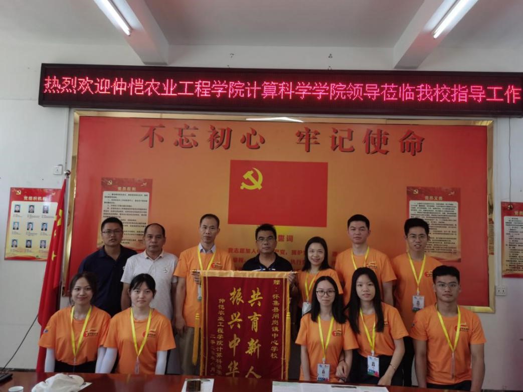 早上九点,计算科学学院党总支书记刘伟坚、党总支副书记郭肖明、辅导员廖蕃共同带领7位仲恺计科学子深入基层。经过三个多小时的车程,抵达肇庆市怀集县闸岗镇中心学校。闸岗镇中心学校德育处韦运主任热情接待我院师生,学校安保人员逐一为师生们测量体温,在安置好行李后,我院师生与闸岗镇中心学校的领导们一同开展此次活动相关指导工作的会议。