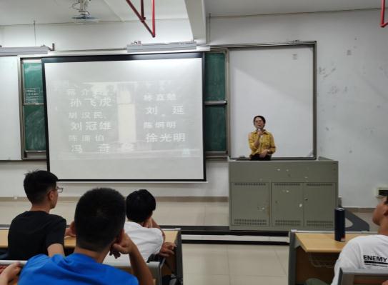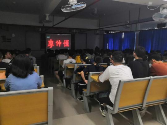 在影片放映前,郭肖明讲述了建校历史和廖仲恺先生的生平。希望通过观看这部影片,加强“知校、爱校、荣校”教育,增进学生对校情校史的了解,增强学生对学校学院的认同感、归属感与荣誉感,激励新生们的知校之行,爱校之情,荣校之心。