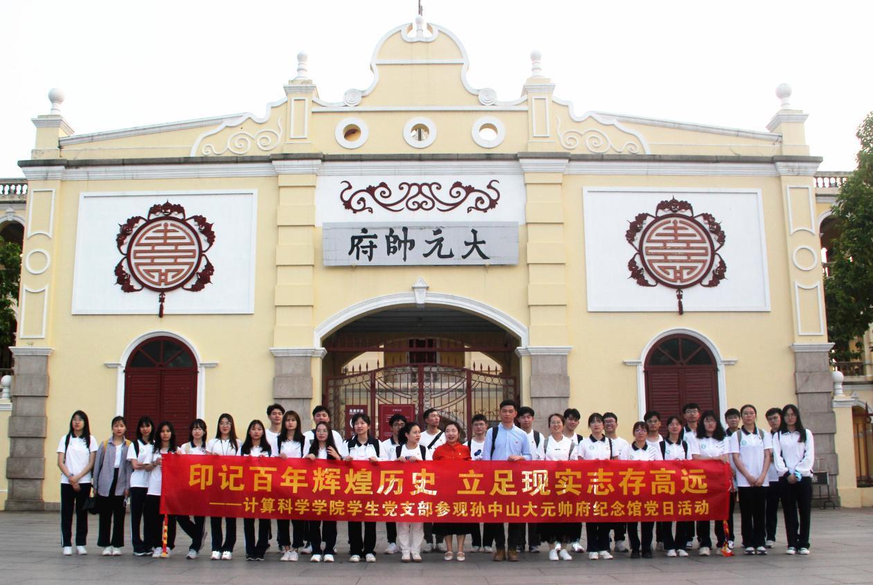 近期,计算科学学院正通过各种形式在师生党员中开展党史学习教育,带领青年学生党员不忘来时路,一起接续努力,创造新辉煌。学院学生党支部日前就组织开展了参观孙中山大元帅府主题党日活动。学院党总支副书记郭肖明、信计专业学生党支部廖蕃、统计专业学生党支部书记张素雅、辅导员吕依驰以及全体学生党员参与了此次活动。