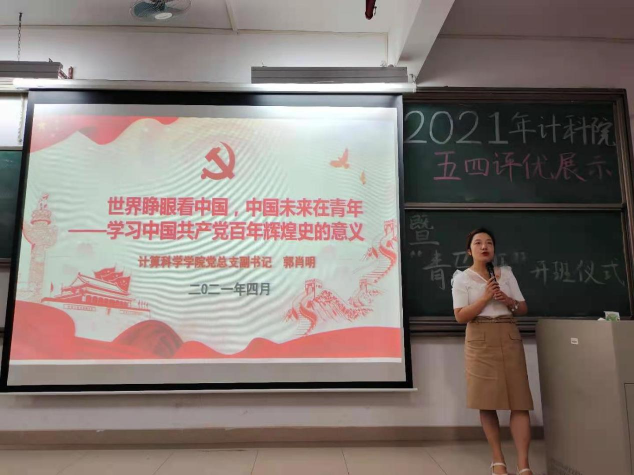为加强对青年学生思想政治引领和服务青年成长成才,充分发挥先进团支部的示范引领作用,激励广大团员青年拼搏奋进,4月10日晚,计算科学学院在D栋707室举行五四评优展示会议。参与本次活动的有党总支副书记郭肖明,辅导员张素雅、廖蕃、吕依驰,2018、2019级各班团支书和班长、2020级各班班干、院团委全体成员等。