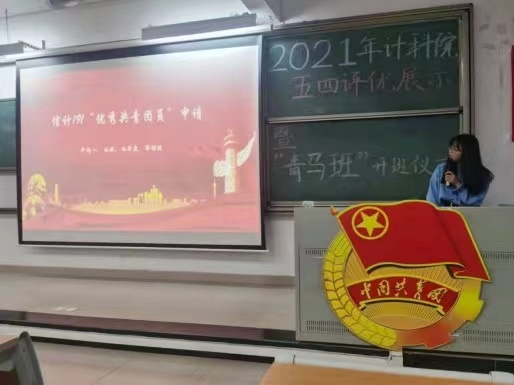 活动开始,主持人介绍到场嘉宾与活动议程。全体奏唱团歌之后,五四评优展示开始,各班团支书代表申报评优的同学们上台演讲,评选的包括优秀共青团员、优秀共青团干部、优秀团支部书记,其主要内容有学业成绩、工作情况、志愿服务、获奖情况等,充分体现了团员青年在思想上积极上进、学习上认真刻苦、工作上踏实认真。