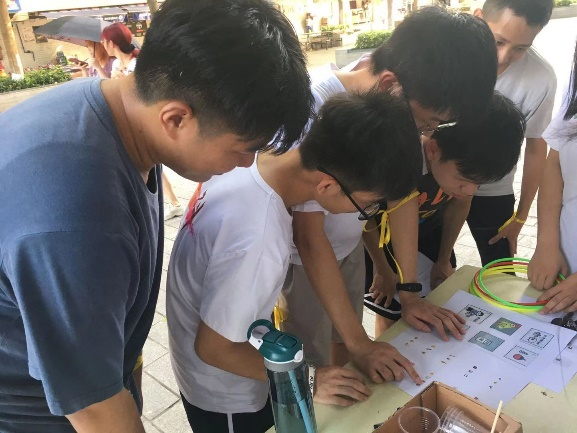 活动开始后,学院三大组织的同学进行了环校跑,他们迈着坚定有力的步伐,挥洒着汗水,展现了青春与活力,为接下来刺激的比赛拉开了序幕。本次活动共有九支参赛队伍。主持人为参赛选手介绍具体游戏规则、流程以及奖励方式。本次活动的最终成绩是由到达大本营的时间和每个打卡点的游戏完成度共同决定的,每支队伍可以根据自己的实际情况进行选择。以下是比赛中的精彩瞬间。