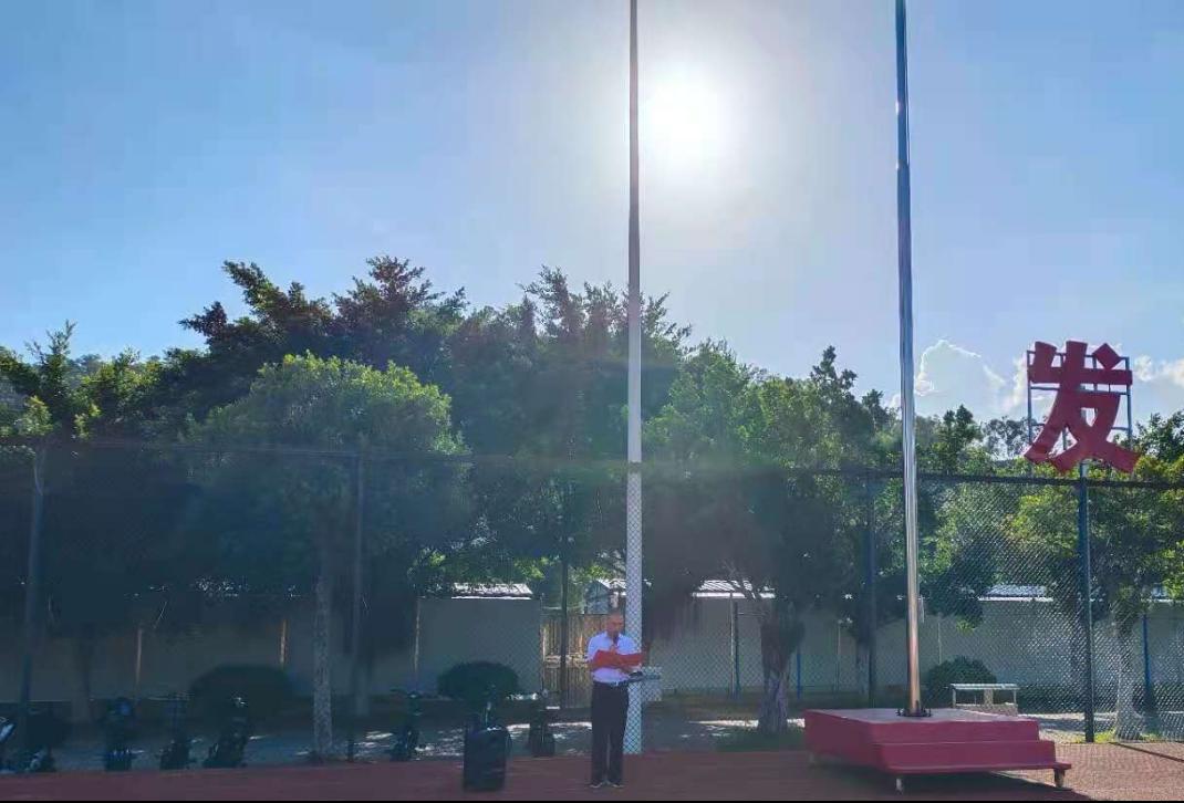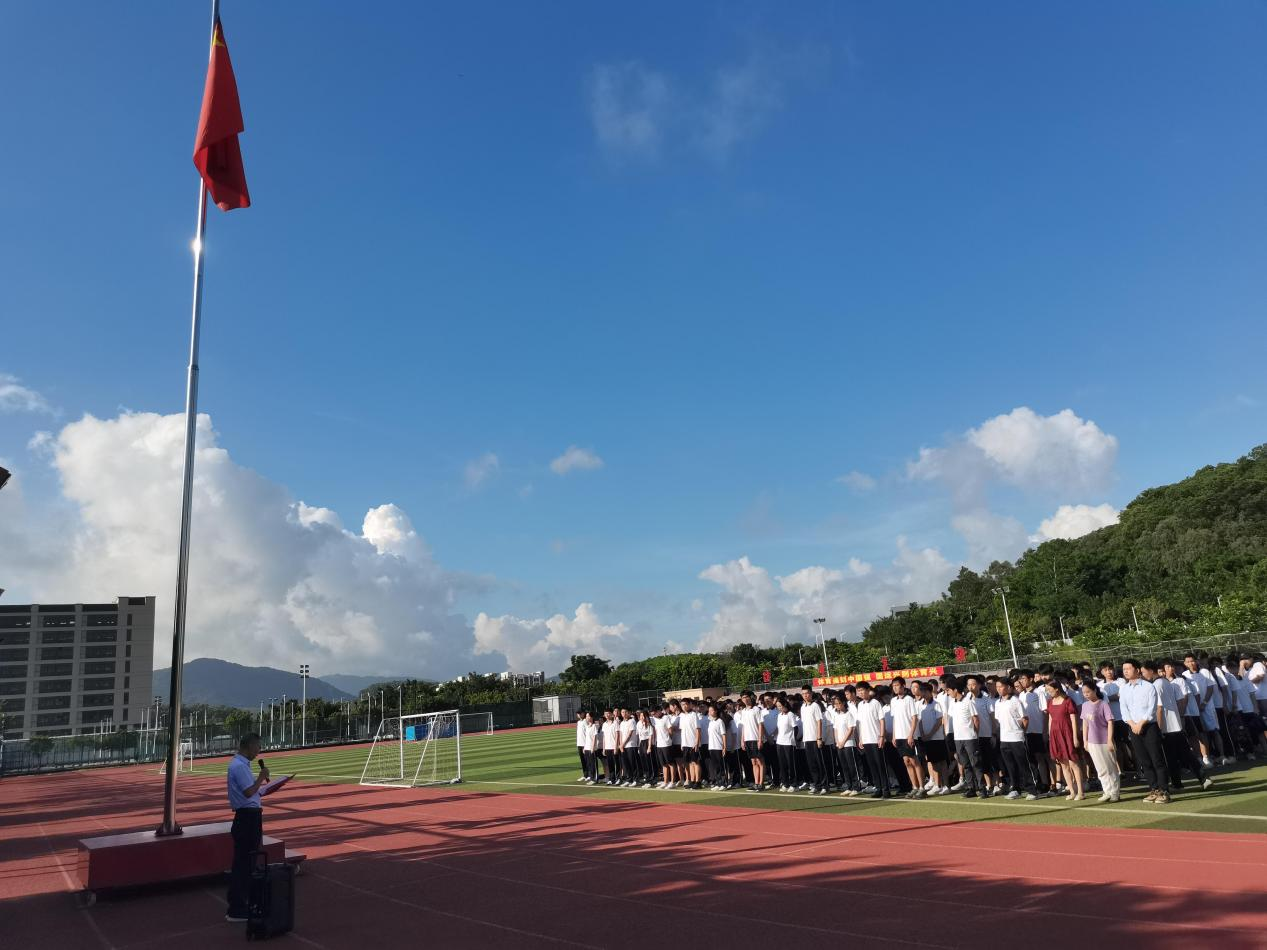 7月12日上午8:00,计算科学学院在白云校区足球场举行本学期第十九周升国旗仪式,参加此次升国旗仪式的有计算科学学院党委书记刘伟坚,辅导员张素雅、廖蕃和吕依驰,学生党员、入党积极分子以及2020级全体学生。本次升国旗仪式由廖蕃主持。