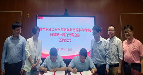 早在今年2月中旬,学院领导班子到国家统计局白云调查队访企拓岗,走访校友、谈合作。双方都本着“互通有无、合作双赢”的原则,后续又开展了2次党建共建活动,包括学习党的二十大精神座谈会、《统计法》宣讲会、就业调研项目合作等,强化了互信,增强了友谊,促成了本次的签约和挂牌合作。在双方参会人员的共同见证下,学院院长张超龙和调查队队长黄朝晖签订了合作协约。双方共同为“国家统计局白云调查队仲恺工作站”揭牌,争取把工作站打造成为党建与业务融合的育人平台。
