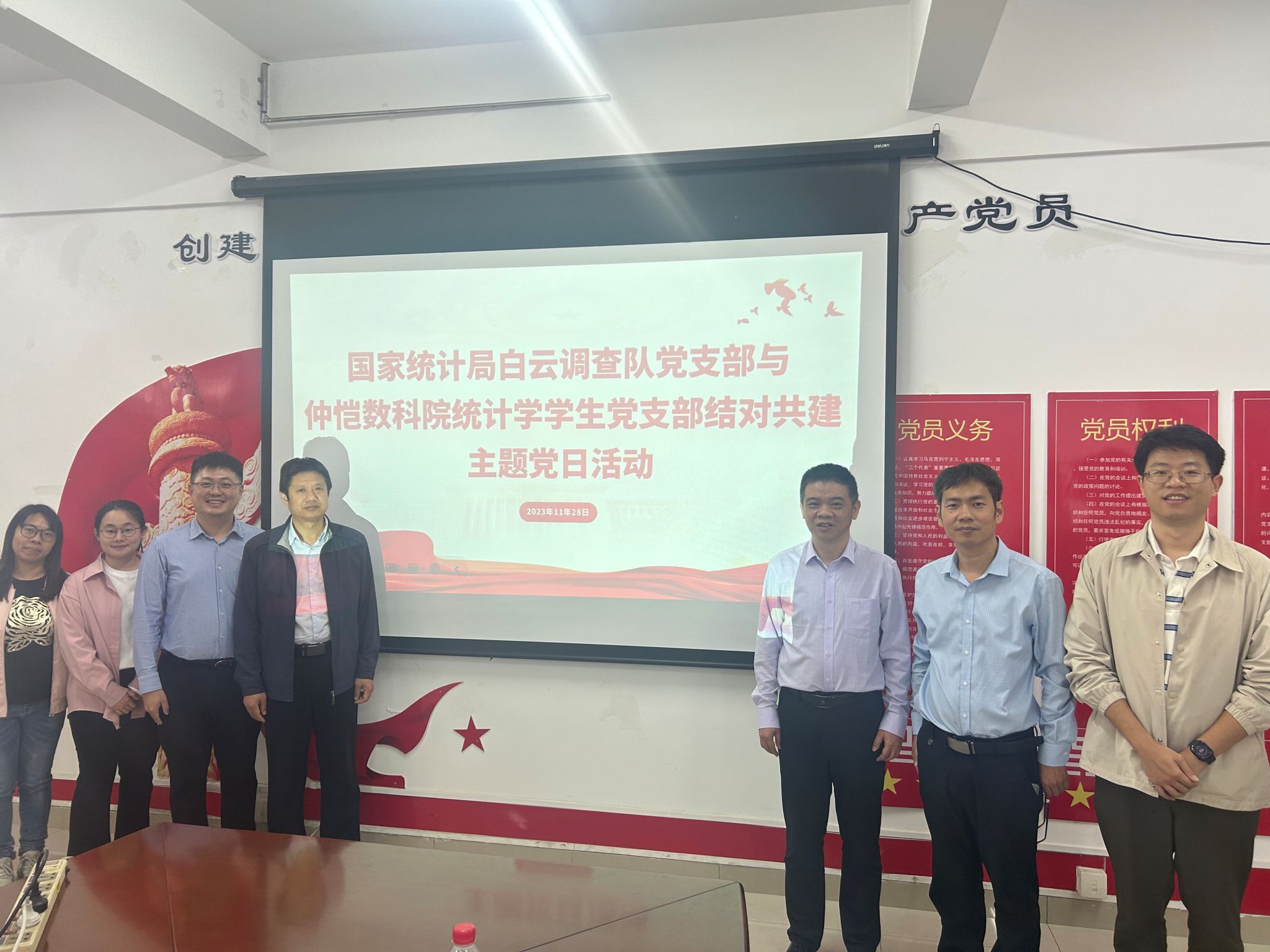 11月29日,m88官网,m88在线网站入口邀请合作单位国家统计局白云调查队党支部黄朝晖书记一行来校开展以培育样板党支部为主题的结对共建主题党日活动。参与本次活动的有学院党委书记王浩,院长张超龙,统计学学生党支部书记吕依驰,辅导员廖蕃、解廷鑫,统计系专任课教师马小芳。活动由王浩主持。