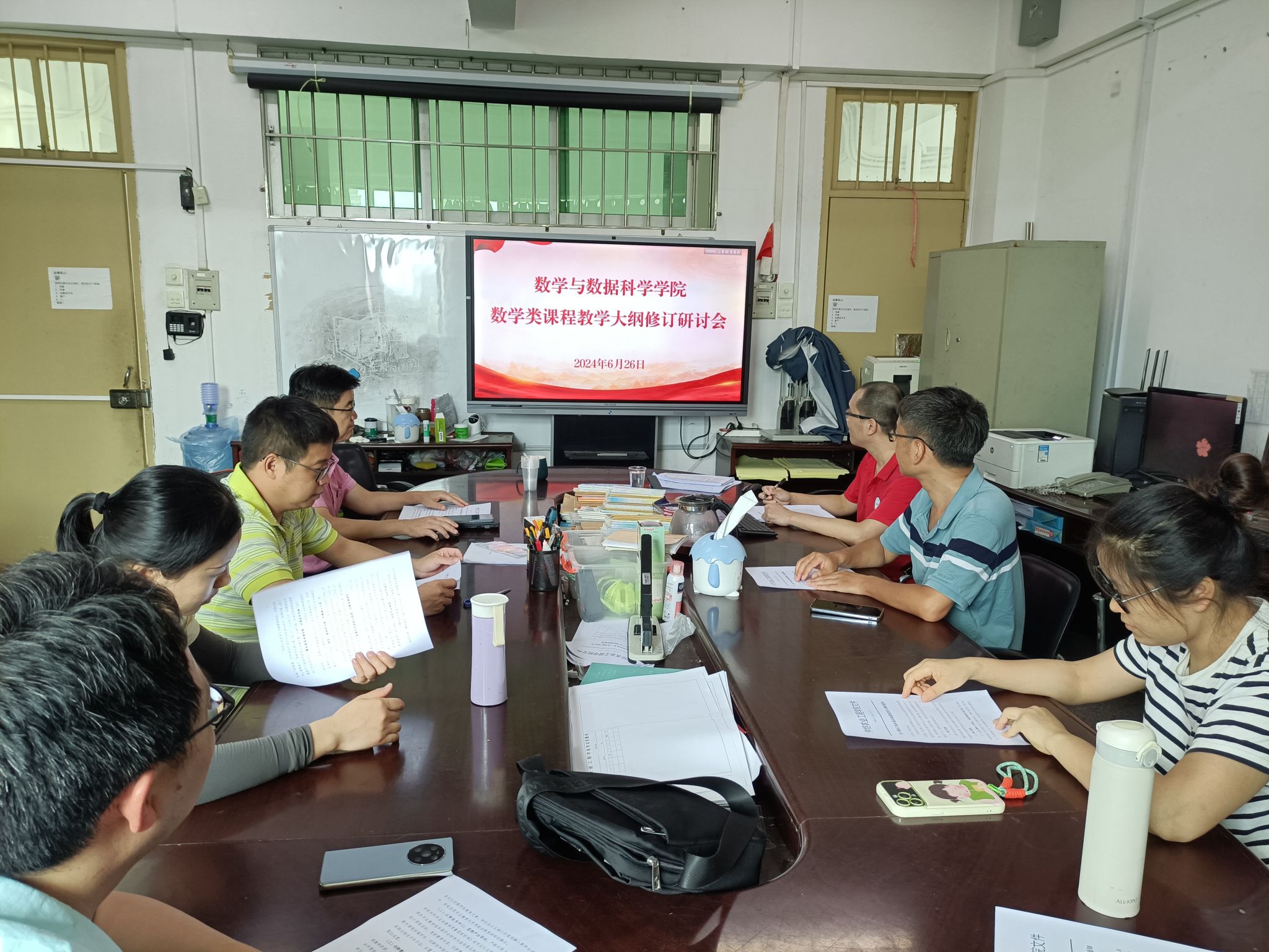 6月26日,m88官网,m88在线网站入口组织召开了数学类课程教学大纲修订研讨会。学院书记、教学副院长、教工党支部书记、数学系主任以及公共数学课教师骨干出席了研讨会。会议由数学系主任黄业辉老师主持。