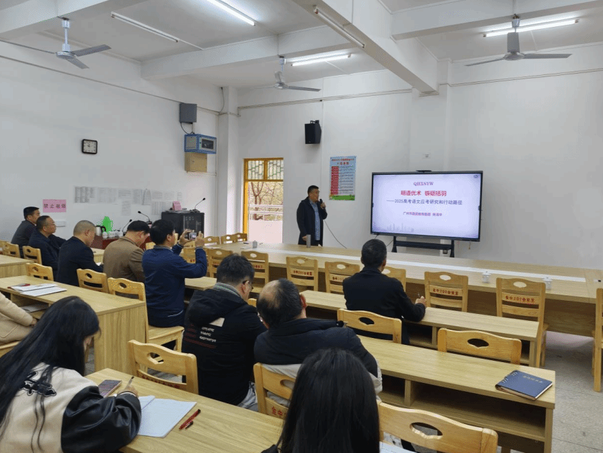 在语文高考备考方面,南武中学陈清华老师以《明道优术,镞砺括羽》为题,系统解析2025年语文高考命题趋势。他结合多年高三教学经验,围绕2025年应考依据和必备资料、2024年高考试题研究、2025年高考应考策略和行动路径、华语轻清等方面展开分析。并分享了他的高三三轮复习整体规划:一轮夯得实覆盖考点的规定动作,二轮提得快突破关键的自选动作,三轮飞得快模拟应战的制胜法宝。满满的备考干货为黄金中学老师优化备考方法提供了可操作性策略。