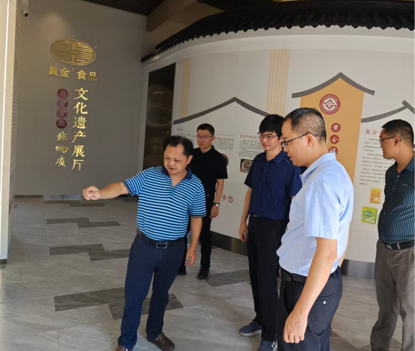团队到当地的黄金食品厂参观调研。在企业负责人引领下,特派员团队参观了厂内的“黄金姜糖非物质文化遗产展厅”,详细了解企业发展历程与匠心传承。展厅内,入选梅州市非遗名录的黄金姜糖及特色产品蜜饯柚皮等悉数陈列,彰显深厚的地方技艺底蕴。双方围绕企业当前面临的发展瓶颈、产品市场渠道拓展等核心议题展开深入座谈,直面产业升级痛点。