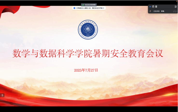 7月27日,m88官网,m88在线网站入口召开线上暑期安全教育会议,旨在强化留校学生安全与教育管理,提高安全意识,筑牢安全防线。学院党委副书记余应坤、辅导员廖蕃及全体留校学生参加会议。