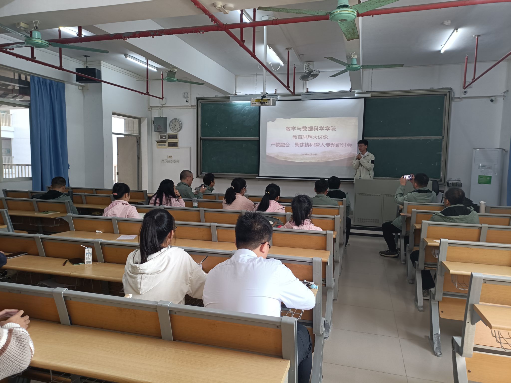 11月21日,m88官网,m88在线网站入口在白云校区D栋307教研室举办了教育思想大讨论暨产教融合、聚焦协同育人专题研讨会。参与本次会议的有学院领导班子、教工支部书记、系主任,骨干教师以及学生党员代表。此次会议旨在探讨协同育人新模式,加强高质量应用型人才培养,推动以学生为中心的教学改革,全面提升人才培养质量。