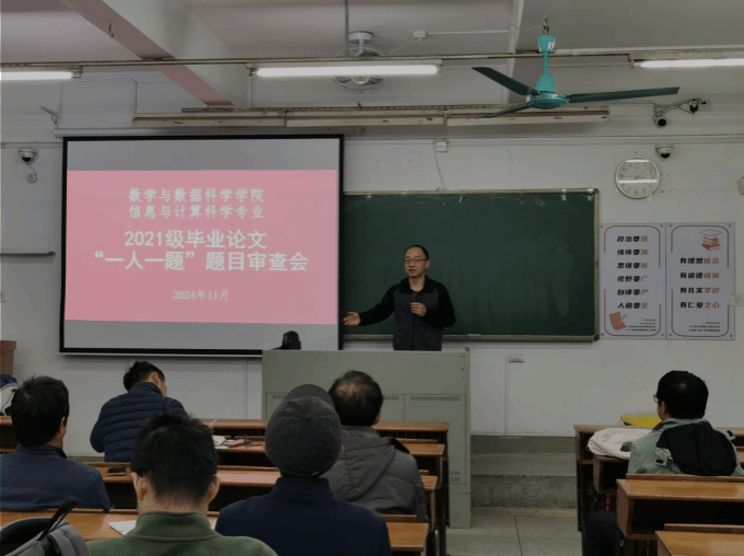 11月28日,m88官网,m88在线网站入口信计系在海珠校区教学楼203召开2021级毕业论文题目审查会议。参与本次会议的有学院领导班子、系主任,专业教师,会议由系主任王前主持。本次会议对2021级毕业生的论文选题逐一进行了细致检查和讨论,旨在保证毕业生论文质量。