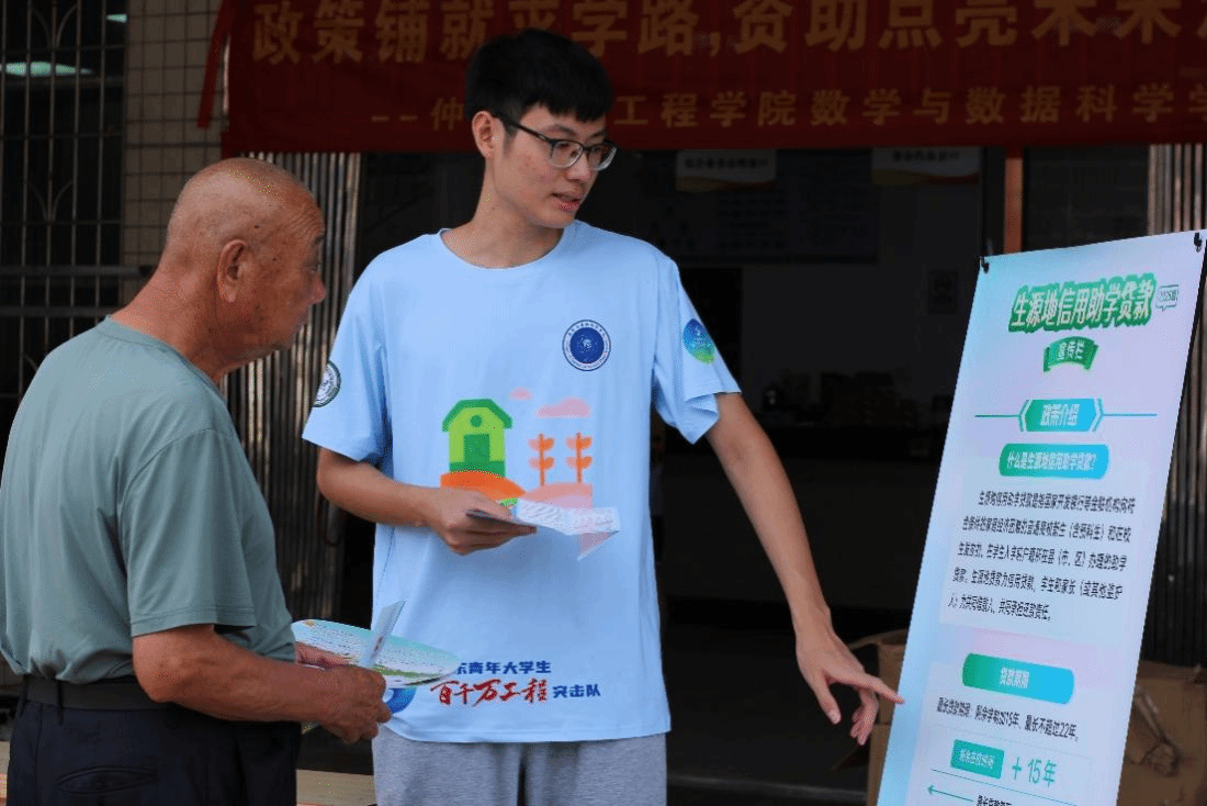 宣讲结束后,突击队员们在乡村振兴人才驿站开展国家资助政策宣传,帮助有家庭经济困难的学生有机会接受高等教育,完成学业。队员们作为“政策讲解员”,耐心细致地为前来咨询的学生和家长解读“奖、助、贷、勤、补、免”等多元资助体系并为他们发放政策宣传册,将国家资助政策化作缕缕清风,吹散萦绕在贫困家庭心中的迷雾。