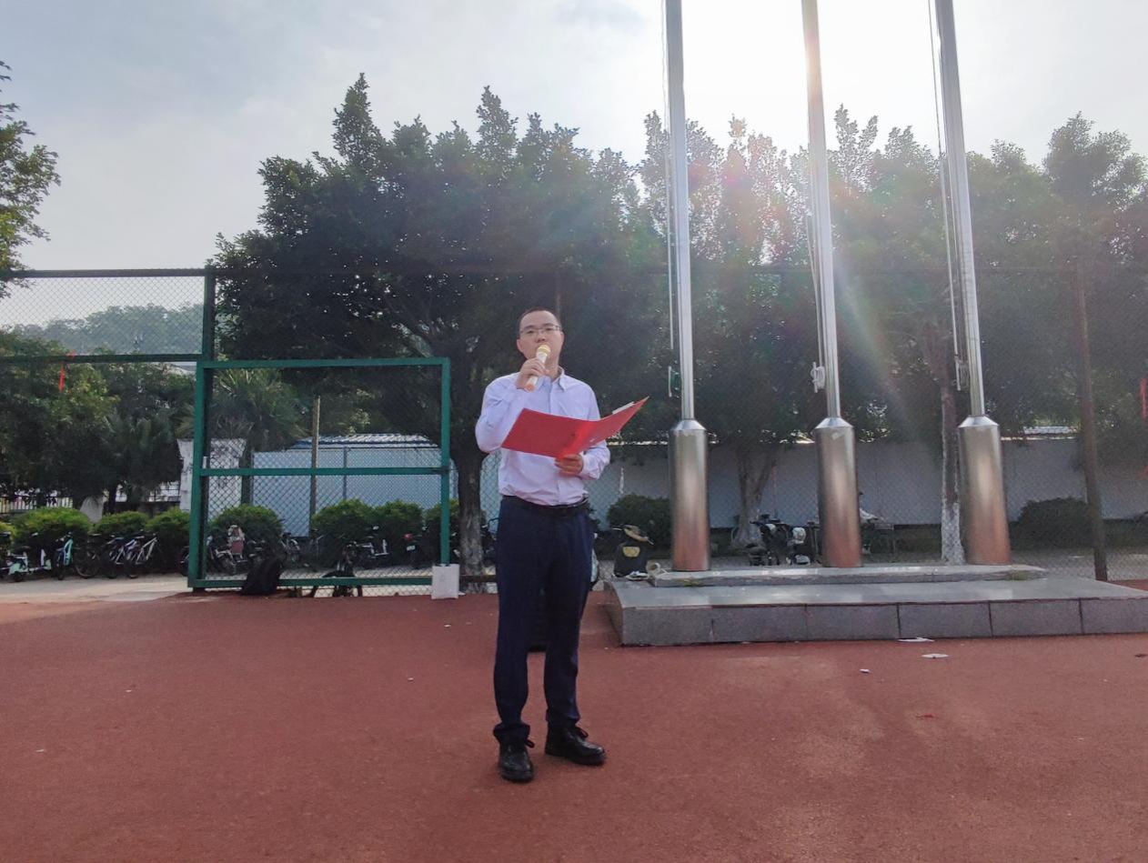 m88官网,m88在线网站入口按照学习贯彻习近平新时代中国特色社会主义思想主题教育实施方案的工作安排,于5月15日,在白云校区足球场开展国旗下讲微党团课活动。学院党委副书记、学生党支部书记、辅导员以及学生党员、入党积极分子、2022级学生参加。本次升国旗仪式由学院团委副书记解廷鑫主持。