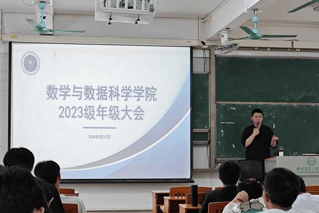 廖蕃从2023级学生学情分析调研、职业规划与毕业生就业情况、校园防灾减灾安全三个方面进行工作布置,通过具体的数据分析指出并强调了各班级存在的优点和不足。希望大家不断提高学习成绩,积极参与学院各项活动。针对近期梅雨季节,要求同学们做好防灾减灾工作,注意宿舍用电安全。