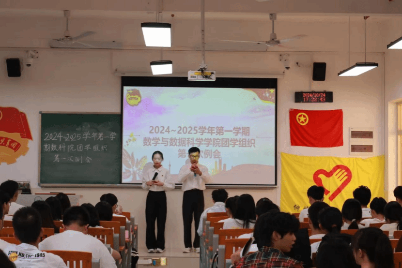 团学各部门代表分别上台发言,对各自部门的基本工作进行总结,并对接下来工作计划进行安排。