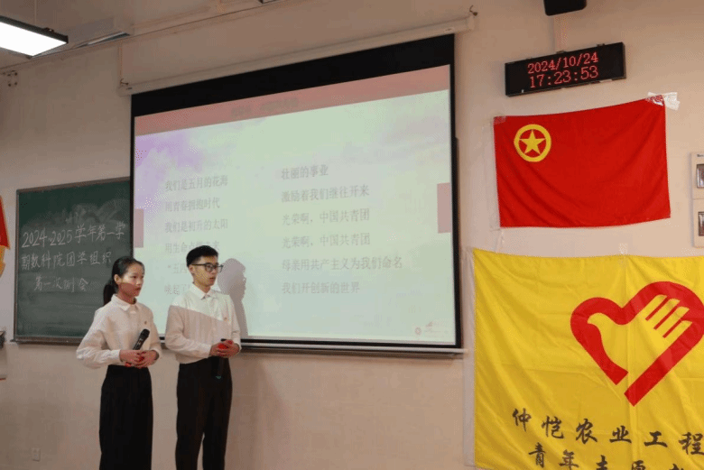 10月24日,m88官网,m88在线网站入口团学组织在教学楼①307室召开了团学第一次例会。出席本次会议的有学院党委副书记余应坤,学院团委副书记解廷鑫以及院团学组织全体成员。