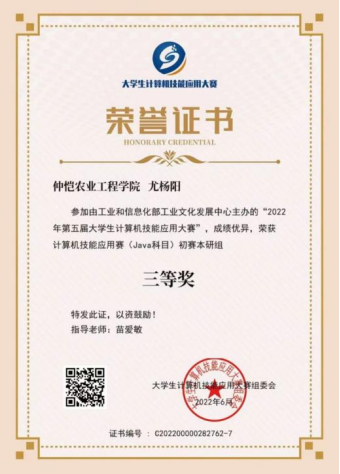 2.2022年获得第五届大学生计算机技能应用大赛初赛三等奖。