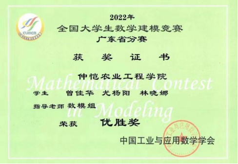 1.2022年获得全国大学生数学建模竞赛广东省优胜奖;