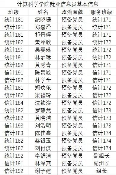 为进一步密切在校生与毕业生的联系,推动学院就业工作的有效开展,经学院就业促进工作小组讨论,聘用以下同学作为2021届毕业生就业信息员,协助学院开展就业创业指导服务工作。请学院全体师生知悉并积极配和工作。